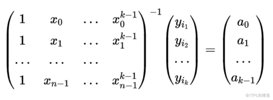 令上式的范德蒙德矩阵的逆*a向量 = b向量,则校验矩阵有如下: