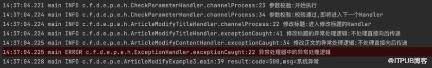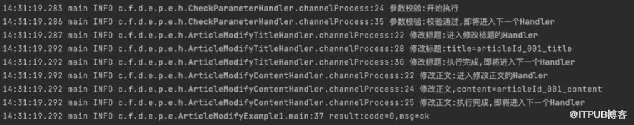 以下是运行 ArticleModifyExample1 的 main 方法打出的日志,可以看到定义的 handler 被逐个执行了。