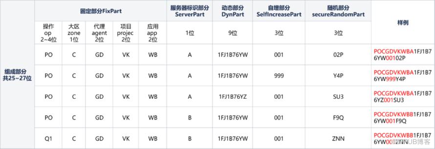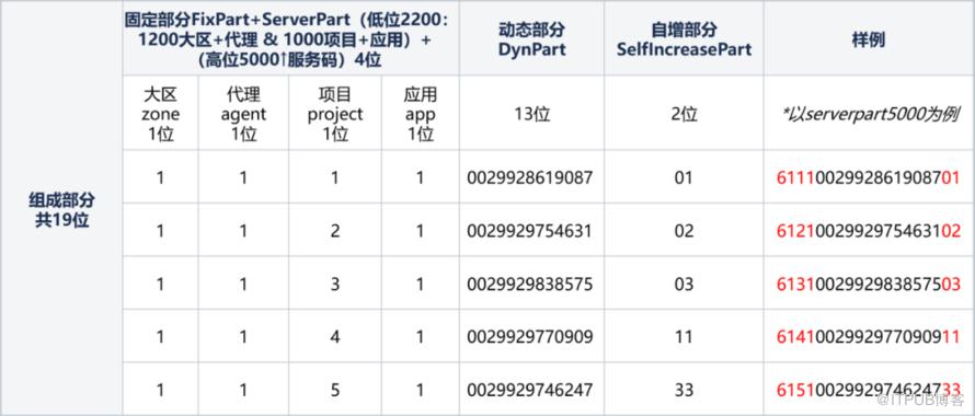 ② FixPart(7位):业务接入时申请获取,由大区zone 1位,代理 agent 2位,项目 project 2位,应用 app 2位组成。
