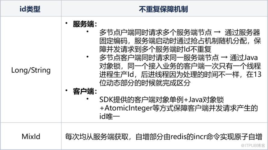 在业务场景上除了常规的Long类型ID,也需要支持“String类型”、“MixId类型”(后详述)等多种类型的ID生成,每一种类型也需要支持不同的长度的ID。