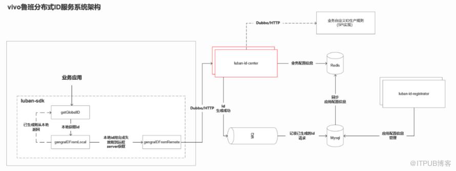 (3)业务侧实现LuBanGlobalIDClient接口内的4个方法,通过SPI机制在业务侧服务进行加载,并向外暴露出HTTP或DUBBO协议的接口。