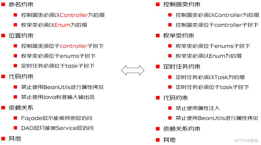 缺少灵活性,架构规则约束支持程度有限,不能很好地解决架构层面规则约束 强调代码质量分析结果,不能有效处理强制规则约束 定制规则有一定成本(因平台扩展能力而异)