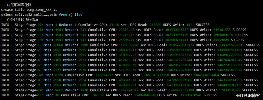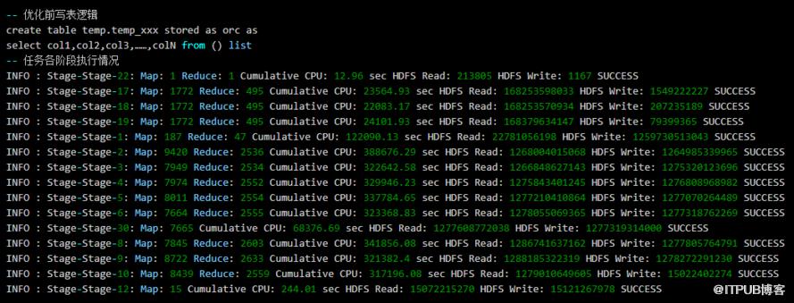 共有 15 个 Stage ,开头 Stage-22 是小表 (319kb) 处理,结尾 Stage-12 是写表 Task 这两个任务较小