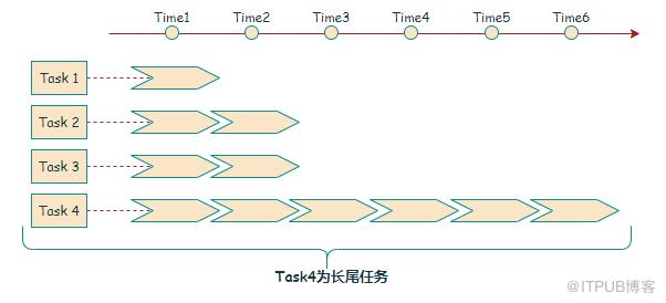 长尾任务是指在一些列任务中,少数的任务处理的数据量远远大于大多数任务的数据量,使得这少数任务的执行时间显著长于其他任务,成为整个任务的瓶颈。