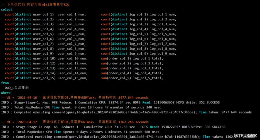 如果我产出的一个中间结果表使用了 ORC 格式,占用存储大小就会大大降低,然后在用这个表去 JOIN 其他表的时候,按数据大小切片后产生的 Task 个数(并行度)就会降低很多倍。
