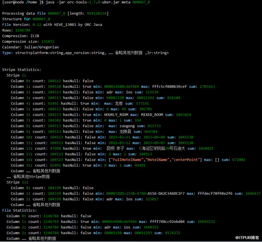 文件级 (file):这一级的索引信息记录文件中所有 stripe 的位置信息,以及文件中所存储的每列数据的统计信息;