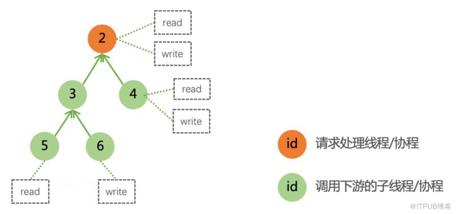对于这种涉及子线程的场景,我们只要把子线程的数据合并到请求处理线程即可。每个请求都会对应一个请求处理线程和一系列的子线程,最终我们可以根据线程 ID 来区分出不同请求。