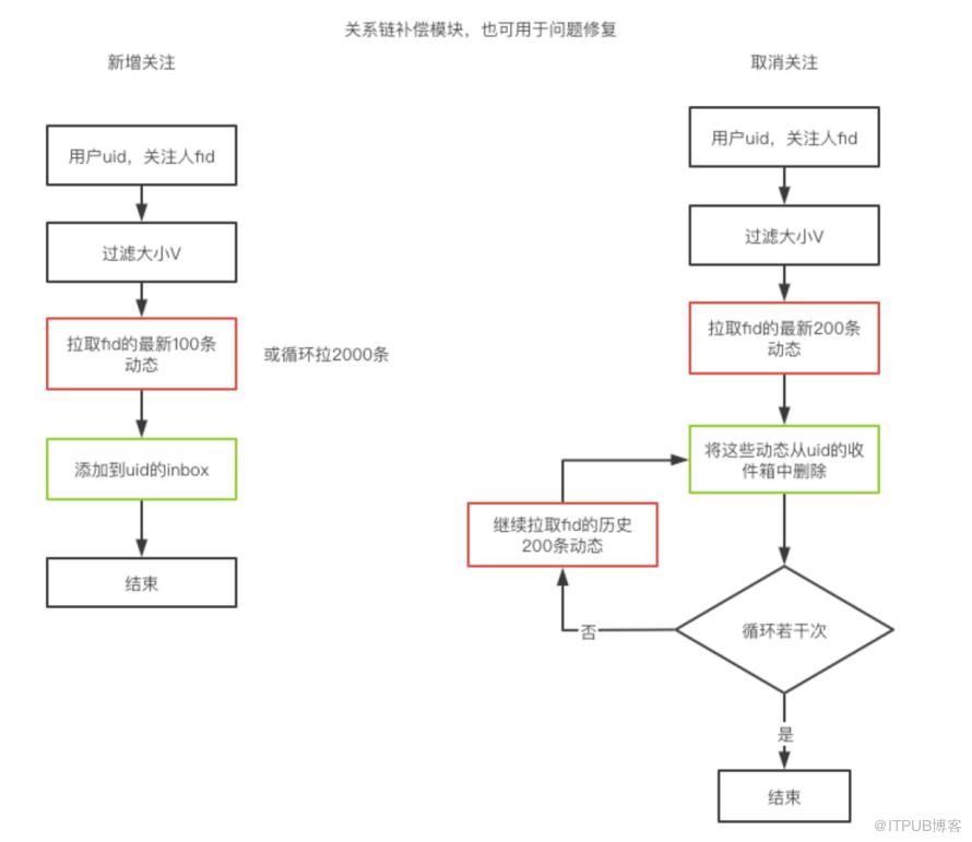 关系链补偿模块:用户关注/取关行为,对inbox的内容做相应改变