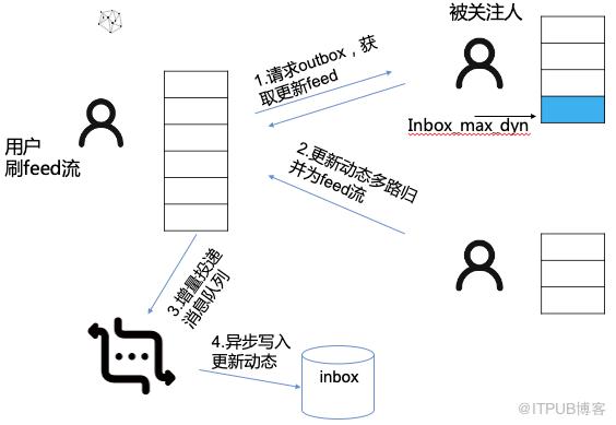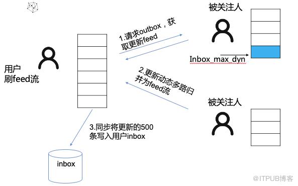 基于这个想法,实现了inbox的最大动态ID作为下限,同步拉取关注列表发件箱的更新,并同步写入inbox,用作快照,下一次拉取则可以避免重复拉取outbox,降低outbox压力。
