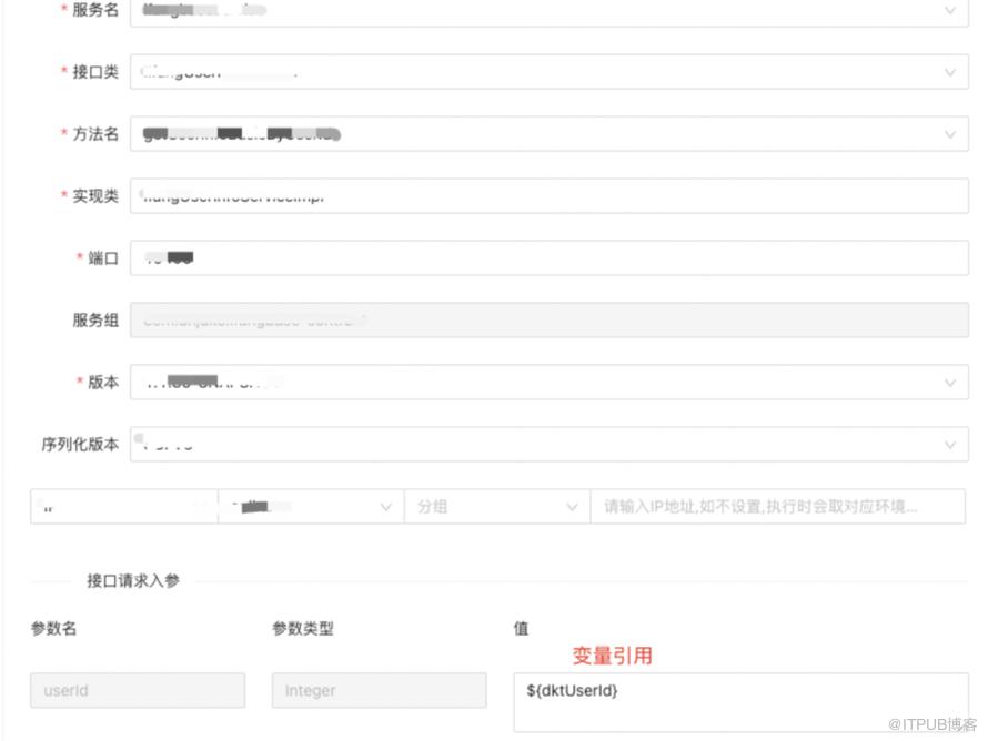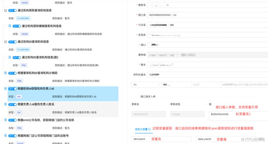 另一方面,想要获得机构负责人的姓名,需要先通过接口1(机构id获取到负责人id),然后通过接口2(负责人id获取负责人姓名)的方式才能得到;那这里面负责人id,就是需要定义成过程变量(dktUserId:data.userId),由接口1提取出来;然后在接口2中输入部分进行参数引用(${dktUserId})。