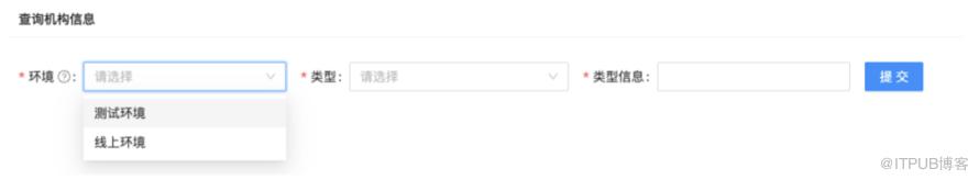 针对我们上面的需求,想要区分环境,不同查询维度,我们的表单就可以设置一个“环境参数”选择框组件、“类型参数”选择框组件、“不同类型对应的查询内容”输入框组件,一个查询按钮,就可以完成输入表单的设计。