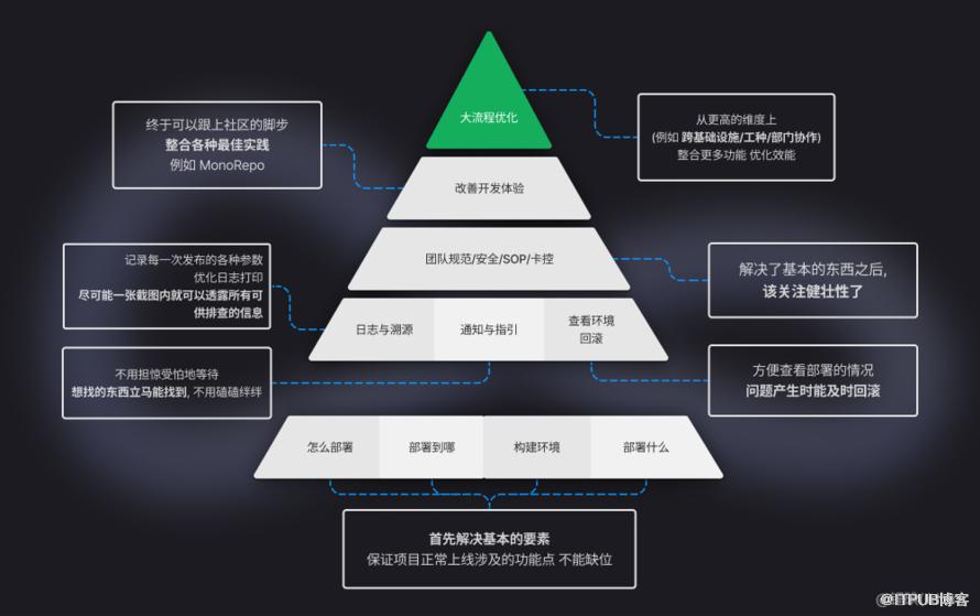 而后前端需要解决的是 如何追踪事故,如何避免本机构建性能孱弱的问题,换一个地方构建,避免多人协作的缓存冲突问题等等