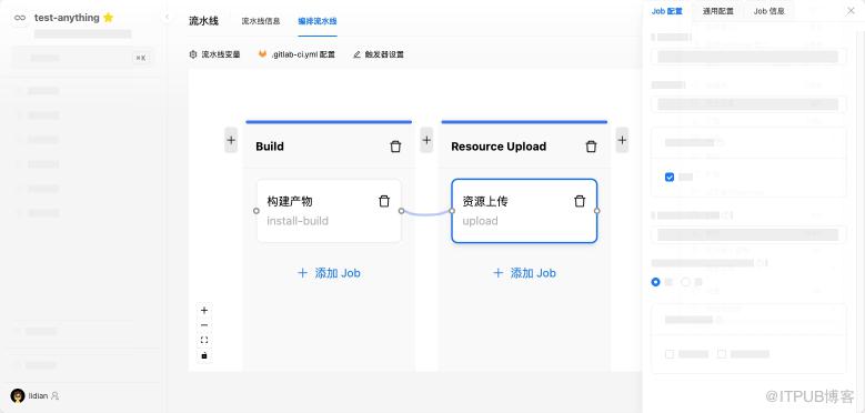 降低操作难度,拖拽 Job 即可编排流水线,不会占用 技术支持 资源