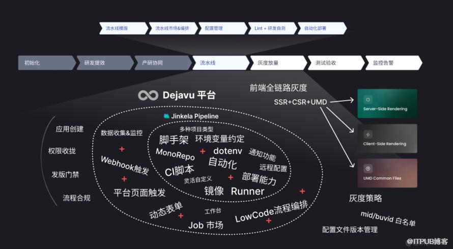 Dejavu 的流水线功能,基于原来的 Jinkela Pipeline 的各种功能点,扩展出了 更多独属于平台才能实现的功能: