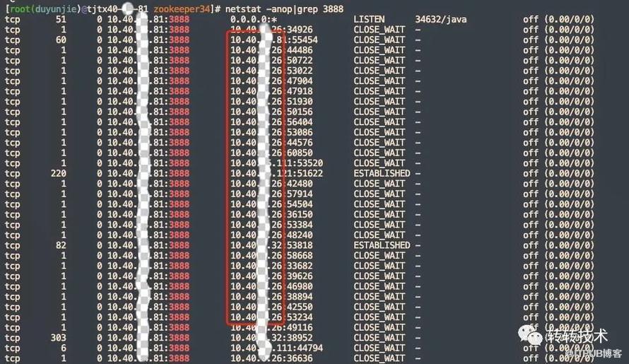 我去,都是SYN_SENT状态!也就是说,SYN包发送成功了,但根本没收到10号3888端口的建连ACK。这也就表明10号的3888已处于假死状态,根本不会响应。查看10号的日志,已经滚动26GB,也没发现什么有效的异常。