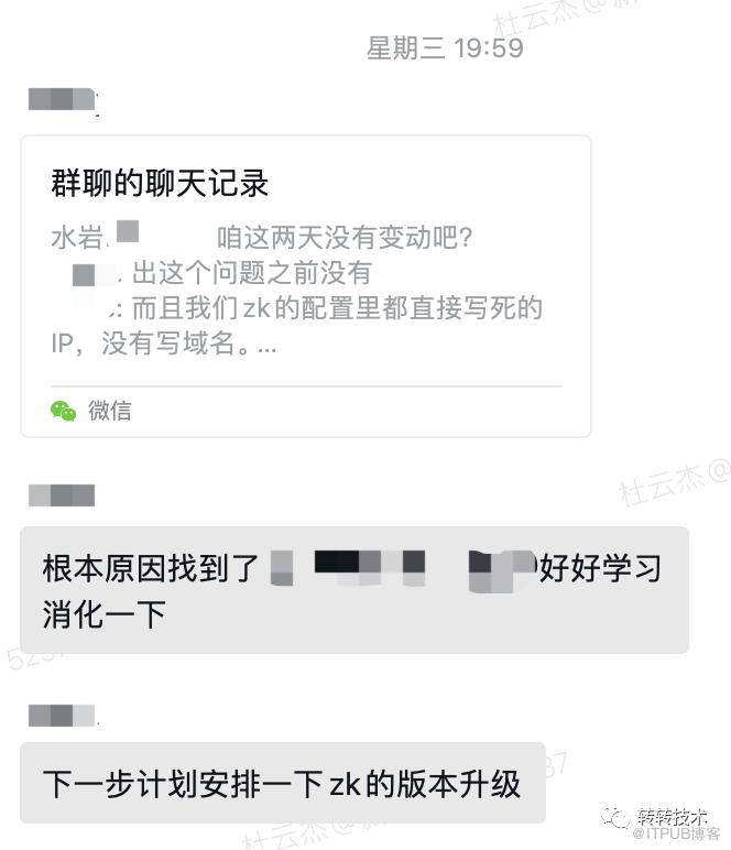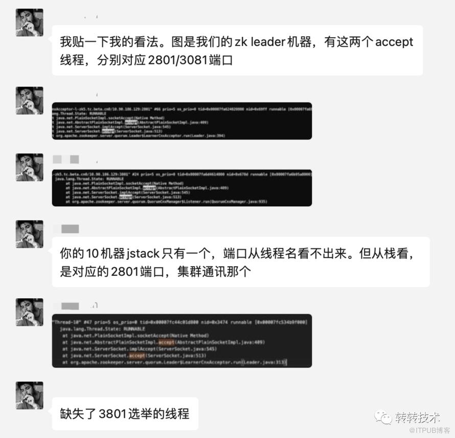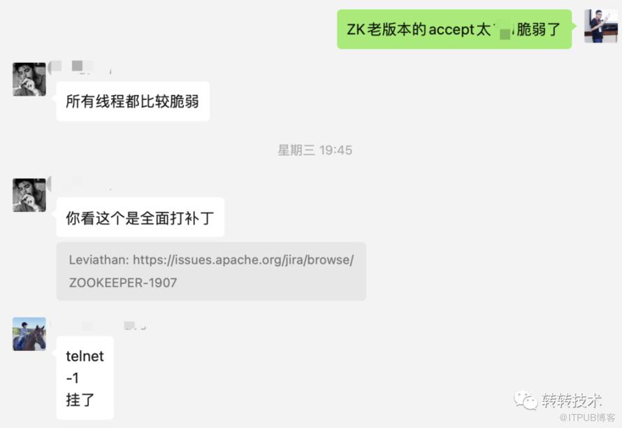 到了这里,虽然确定10号3888端口假死,但再往下走毫无头绪。这时灵光一现,我们ITCP联盟有个架构群,可以看看大家有没有相关的经验,于时紧急求助。