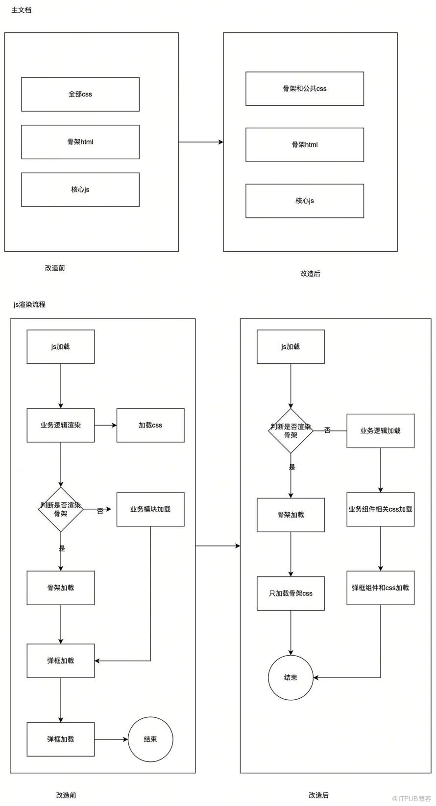 对现状分析,主要存在首屏渲染速度慢、打开页面存在白屏、页面加载过多资源等问题,核心手段是增加骨架、接口优先级调整、预渲染、减小包体积等。