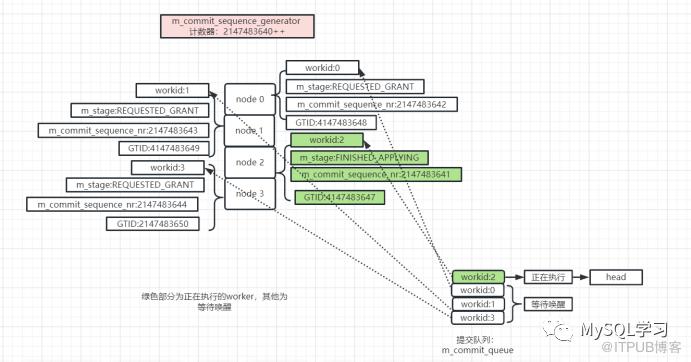 C. 通过提交队列头部获取的下一个worker线程,其节点的m_commit_sequence_nr信息必须和当前提交事务的worker id的m_commit_sequence_nr+1 相同
