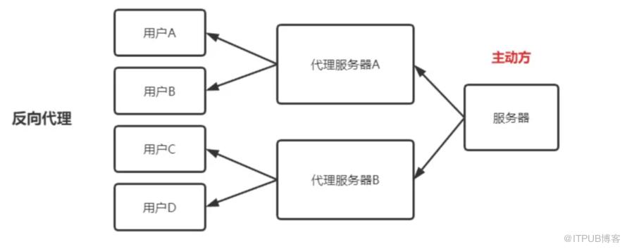 反向代理的主动方是服务器,主要是提供负载均衡、安全防护等作用。