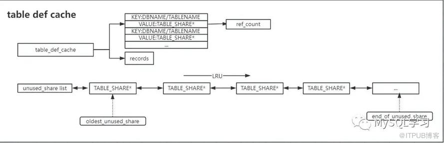table cache的m_unused_tables为LRU管理 table def cache的unused_share list为LRU管理 dict table cache的table_LRU为LRU管理