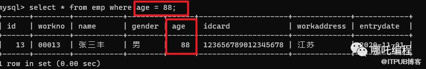 select * from emp where age = 88;