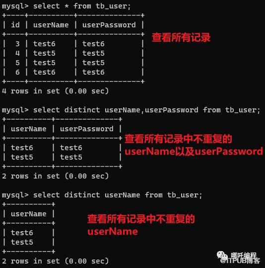 SELECT DISTINCT 字段1,字段2... FROM 表名;