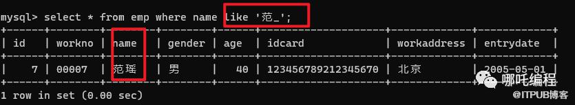 select * from emp where name like '范_'; # 名字只可以为范X