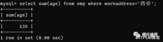 select sum(age) from emp where workaddress = '西安';