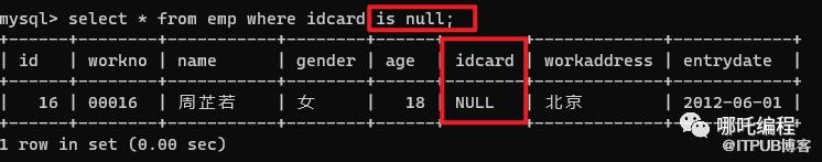 select * from emp where idcard is null;