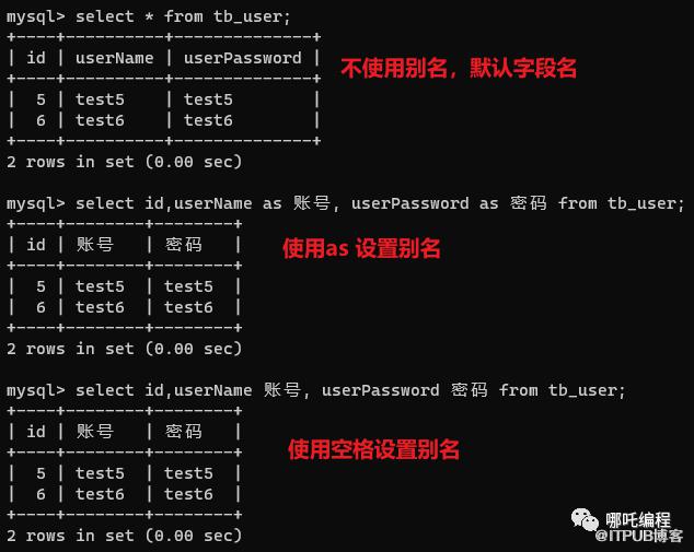 查询时为字段设置别名