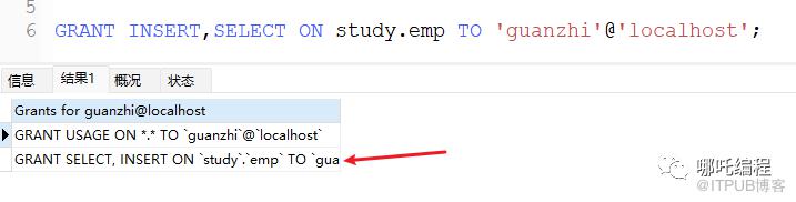 注意事项: 多个权限之间,使用逗号分隔 授权时, 数据库名和表名可以使用 * 进行通配,代表所有