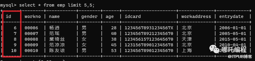 select * from emp limit 5,5;
