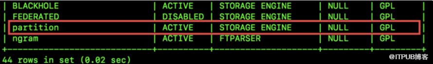 从 MySQL5.6.1 开始,have_partitioning 参数已经被去掉了,而是用 SHOW PLUGINS 来代替。若有 partition 行且 STATUS 列的值为 ACTIVE,则表示支持分区,如下所示: