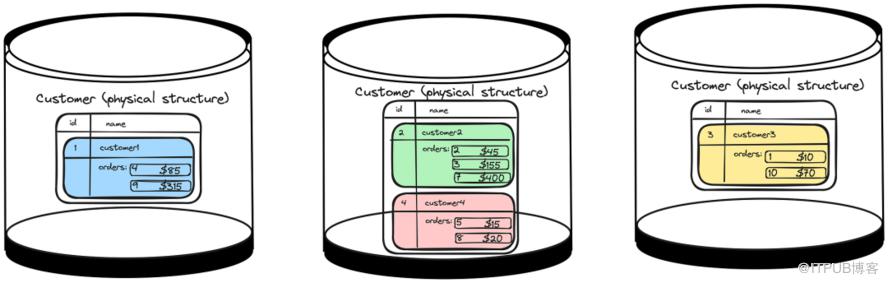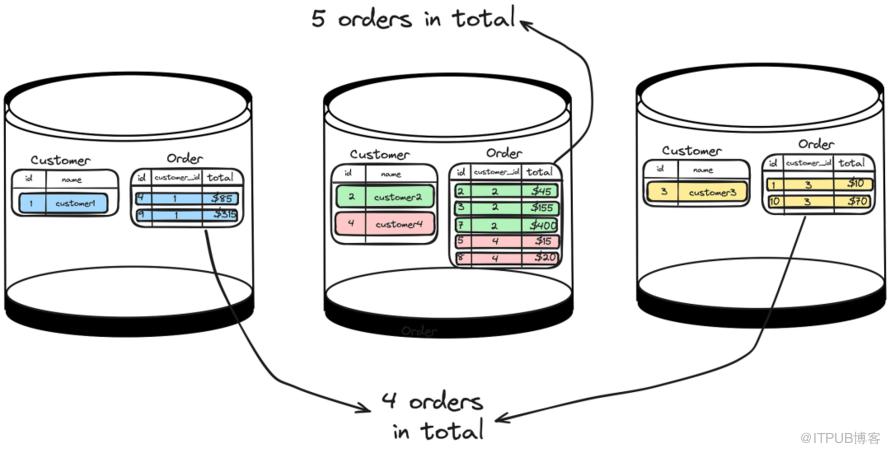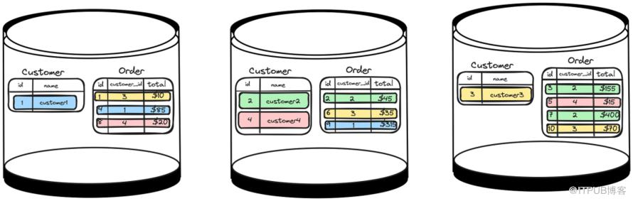 Customer主键(id, bucket)中添加bucketID,你可以为经常购买者创建多个记录 —Customer (1, 1),Customer (1, 2),Customer (1, 3)等。然后,可以将客户的订单添加到特定的桶中,从而允许数据库将它们分布到多个节点。然而,这种方法使应用程序逻辑变得更加复杂,需要决定桶的数量和每个新订单的合适桶。
