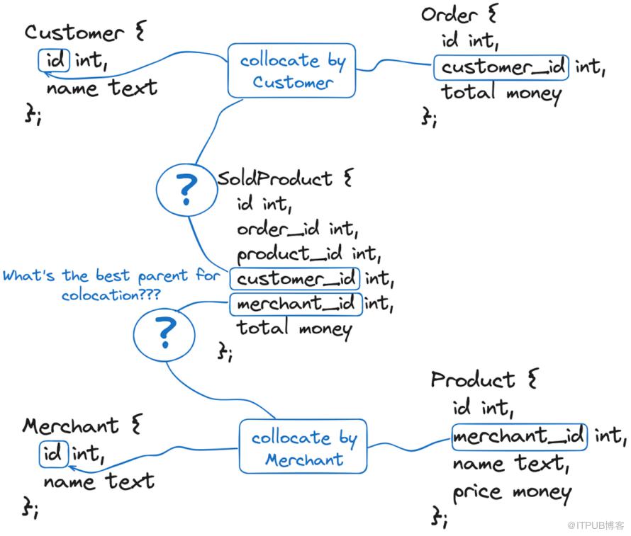 工程团队决定将表 Product(子表格)记录与 Merchant 表格(父表格)的行共置。