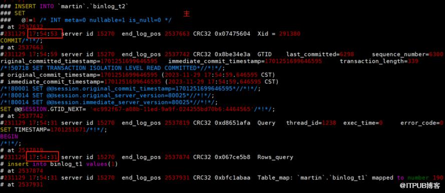 也就是并发事务,先执行SQL的,后面再提交(什么时候提交,什么时候记录Binlog),可能会出现时间在前面的事务,Binlog位置在后面,看起来像乱序了。