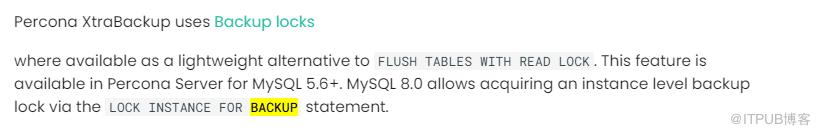先说答案:5.6+,是ftwrl(FLUSH TABLES WITH READ LOCK),8.0是LOCK INSTANCE FOR BACKUP