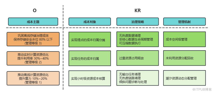 22年Q4,我们在深入实施存储治理的同时,已对YARN、Flink、Kafka等多项资源展开瓶颈摸排、数据建设和策略预设的工作。23年H1,上述资源治理的计划全部体现在OKR目标中。