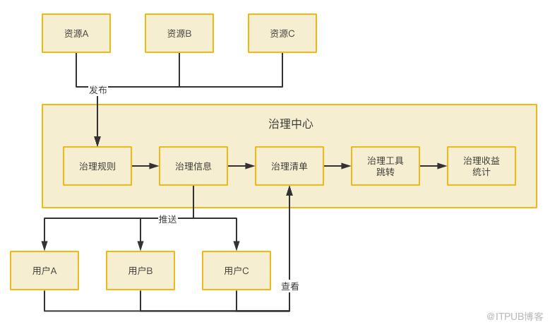 由于不同资源治理由不同团队推进,发布清单和操作工具不同,用户需要面对多个沟通群,理解背景、获取清单、学习如何处理的成本也很大。治理中心上线后,用户的治理流程被抽象为接收治理中心的推送,通过推送信息进入问题清单,在问题清单进入对应操作模块,操作完回到治理中心查看效果,这样简单的操作框架。