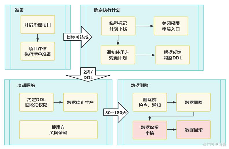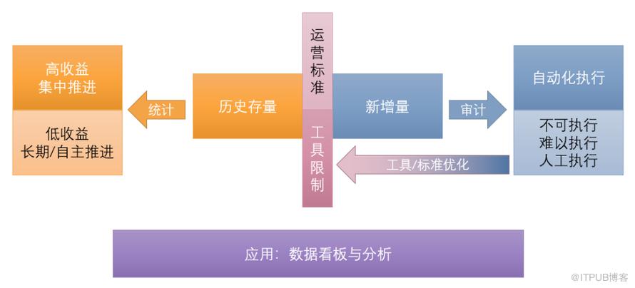 多元化治理的核心矛盾点,在资源类型的多元化与人力工时的恒定不变之间。因此,如何提高人效,是实现多元化的关键。为提高人效,我们定义了一个治理操作框架。该框架,确保数据输出是为治理应用服务,确保上一个治理项的发布与实施,能为下一个治理项积累经验、沉淀工具。