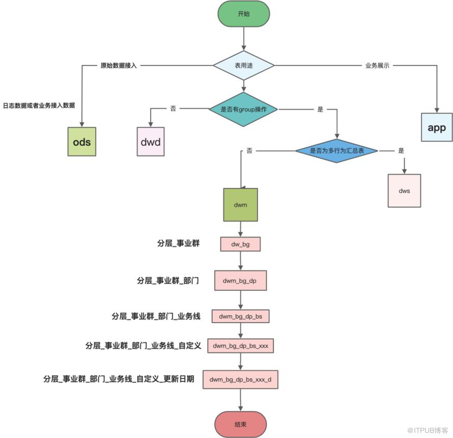 分层:表的使⽤范围 事业群和部门:⽣产该表或者该数据的团队 业务线:表明该数据是哪个产品或者业务线相关 主题域:分析问题的⾓度,对象实体 ⾃定义:⼀般会尽可能多描述该表的信息,⽐如活跃表、留存表等 更新周期:⽐如说天级还是⽉级更新