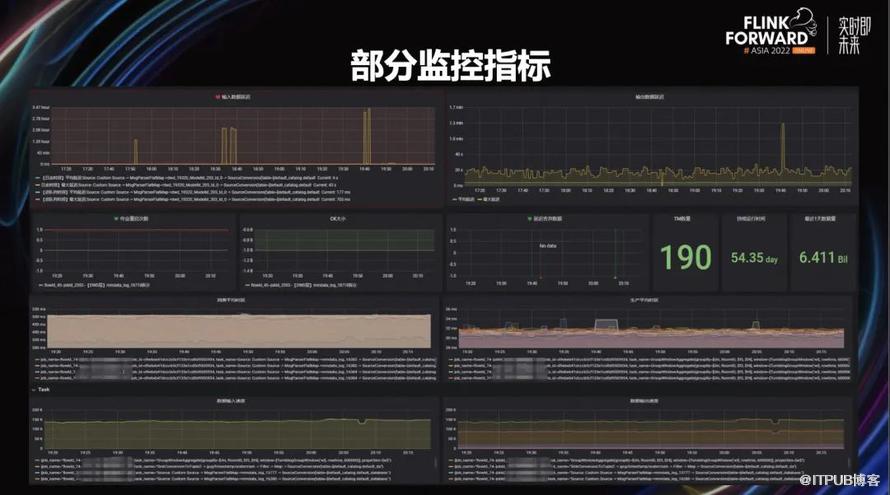 上图展示的是部分监控指标。包括数据输入延迟是多少、数据输出延迟是多少、每天处理计算量等等。