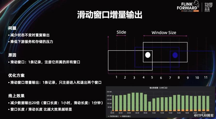为了这个解决问题,我们做了一个滑动窗口增量输出的窗口,即一条记录过来,只注册这条记录进入和退出的两个窗口,其他窗口都不注册,这样就可以大大减少我们的输出,常常可达到减少 20 倍左右。
