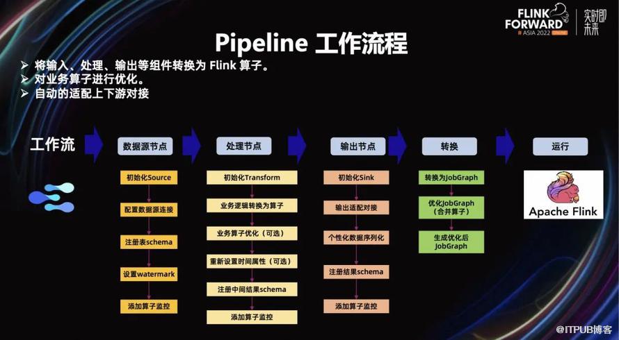 统一计算 Pipeline 框架是将输入、计算、输出等组件串起来变成 Flink Job。