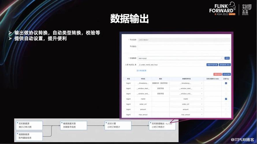 我们的输出节点设置的也比较简单,用户按照他们应用场景选择需要的输出节点,然后拖拽节点进行简单的配置就可以了。我们帮助用户做协议的转换、自动类型的转换、校验等等功能。同时还会提供一些自动化设置的能力,比如用户要输出一个数据到一个 MySQL 表,就会有很多字段需要做映射,如果字段名一样,我们会做一些自动映射,提升他们的效率。