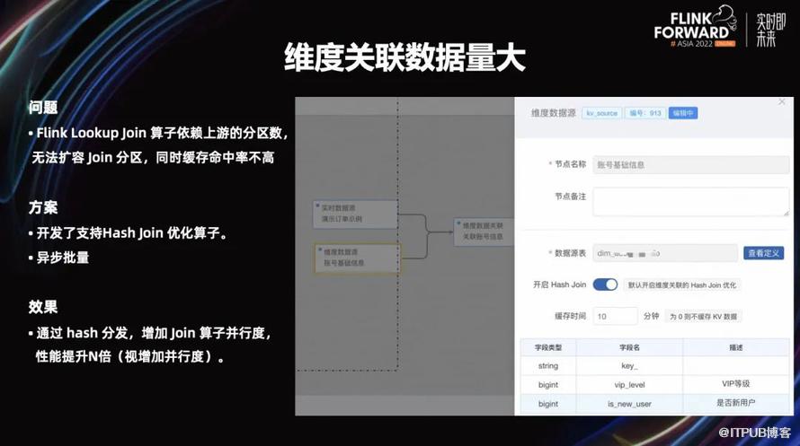 优化之后,因为是通过 hash 分发了,就可以扩容我们的 Flink 作业来提升它的吞吐能力,同时也提升了缓存的命中率,因为 hash 之后的缓存命中率会更高。对于用户来说,他只需在选择维表数据的时候开启 hash Join 策略即可,目前我们已默认打开了这种策略。