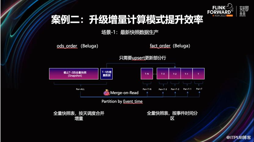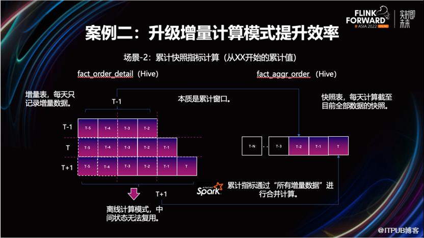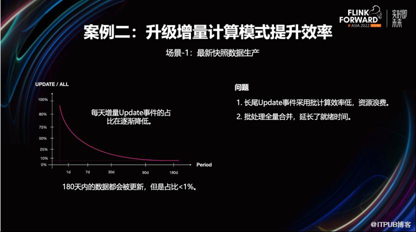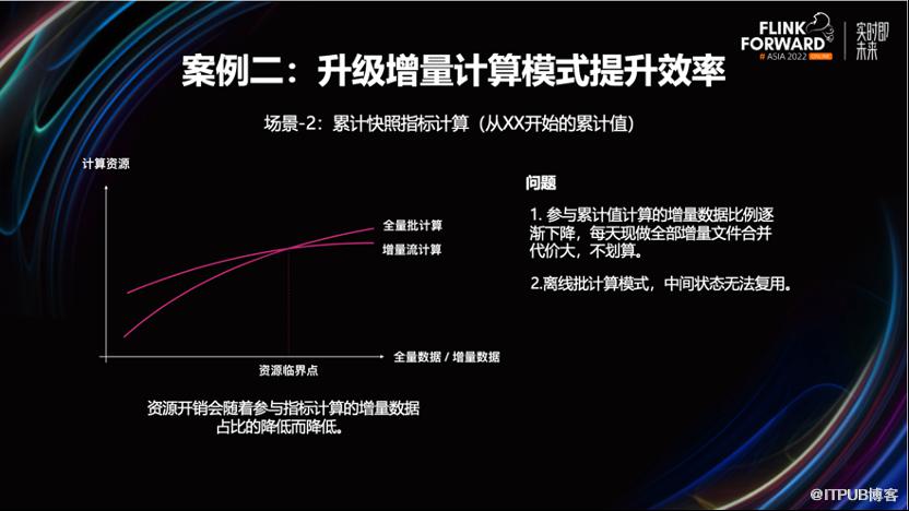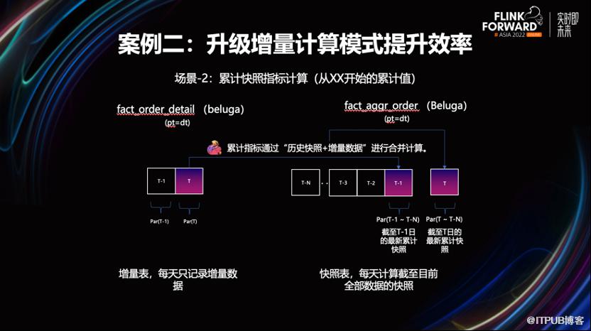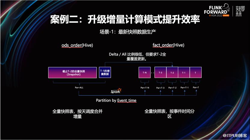 改造后效果非常明显。流量数据的就绪时间提前了两小时以上,因不在依赖凌晨的调度,也不会因为资源不足而造成作业长期处于 Pending 状态,资源的利用率得到了提升。3.2 案例二,通过增量计算模式来提升计算效率