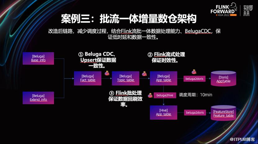 比如当业务遇到长周期的多流数据关联时,为了保证数据的一致性,需要在 Flink 状态中保留很长一段时间的数据快照。一方面,由于状态量过大,影响 Checkpoint 制作的稳定性。另一方面,由于 Flink 内部状态无法在多作业进行共享,有些作为公共维表的数据存储,存在资源浪费。针对这种场景,我们可以通过 Beluga 的 Hbase 自带的 Cell 级别的更新能力,实现一些长周期、双流关联的业务场景需求。理论上我们还可以借助 Hbase 的点查能力,支持维度关联 Lookup-join 的场景。一方面,可以缓解 Checkpoint 的压力。另一方面,数据可跨作业共享,资源利用率也得到了提升。2.5 批流一体数据生产、运维能力