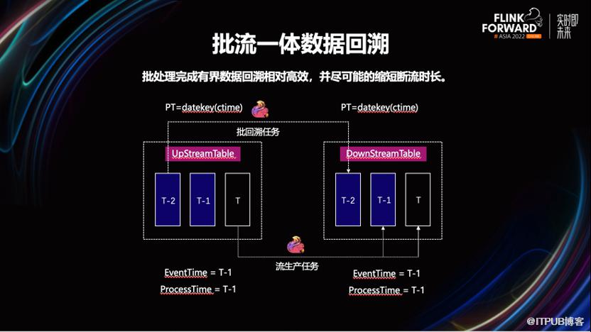 数据回溯是很常见的运维场景,已知在达到相同的计算吞吐量的情况下,流计算模式,要比批模式运行使用更多的计算资源。所以这里会采用 Flink 批任务完成数据的回溯。