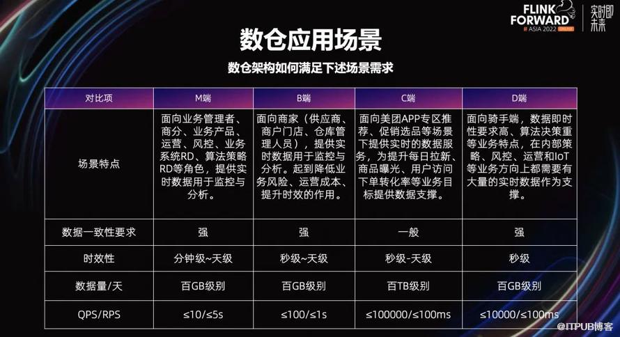 目前美团内部会有 M、B、C、D 端等四大类业务场景,不同的场景之间对数据一致性、时效性的要求有交叉,但又不完全相同,需要寻找一套尽可能适配所有这些场景的技术架构。首先我们会想到的是 Lambda 架构,它会通过实时链路解决高时效性的用数场景的需求;并通过离线链路来解决一些长业务周期的指标计算的需求;以及对数据一致性要求较高的场景的用数需求。